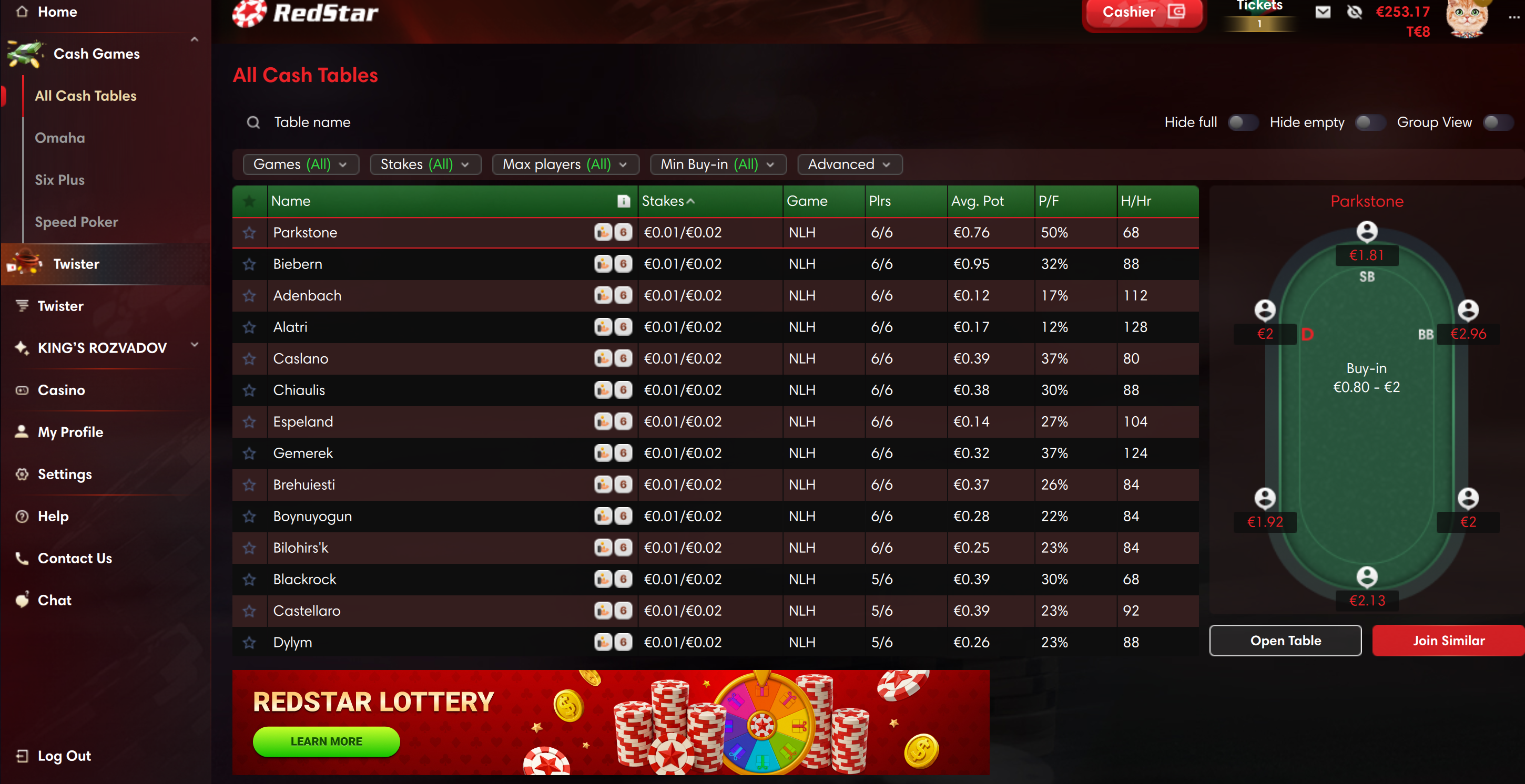 С этого дня десктопная версия покерного клиента полностью обновляется! Клиент отличается передовой графикой и стильным дизайном, вдохновлённым новейшими мировыми технологиями, обеспечивая динамичный и захватывающий пользовательский опыт. Интуитивно понятное навигационное меню поможет вам легко ориентироваться в покерном мире, помогая находить игры и присоединяться к ним быстрее, чем когда-либо.